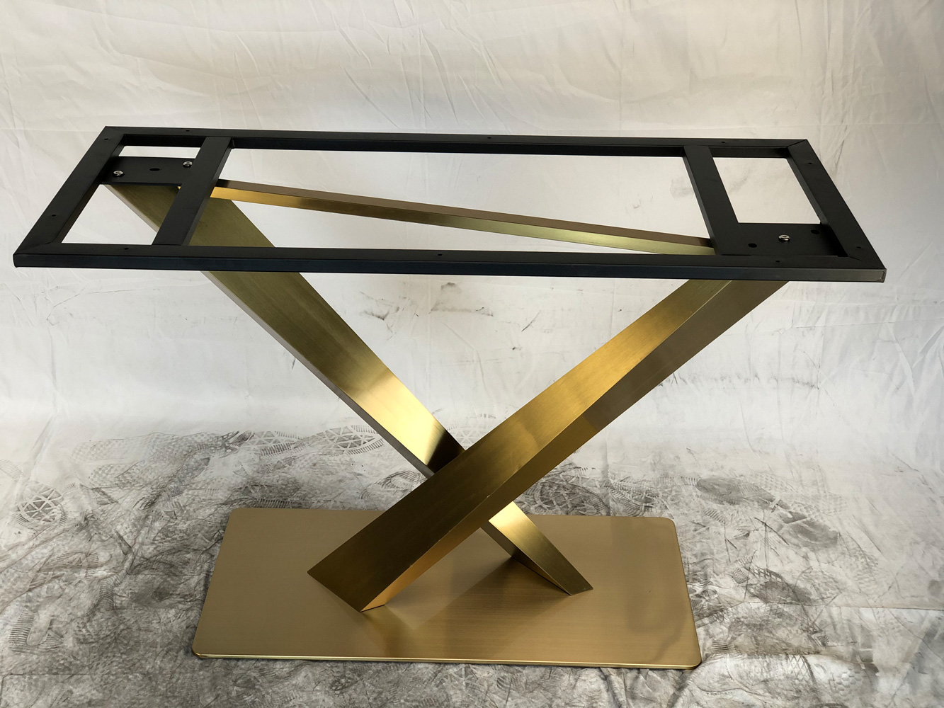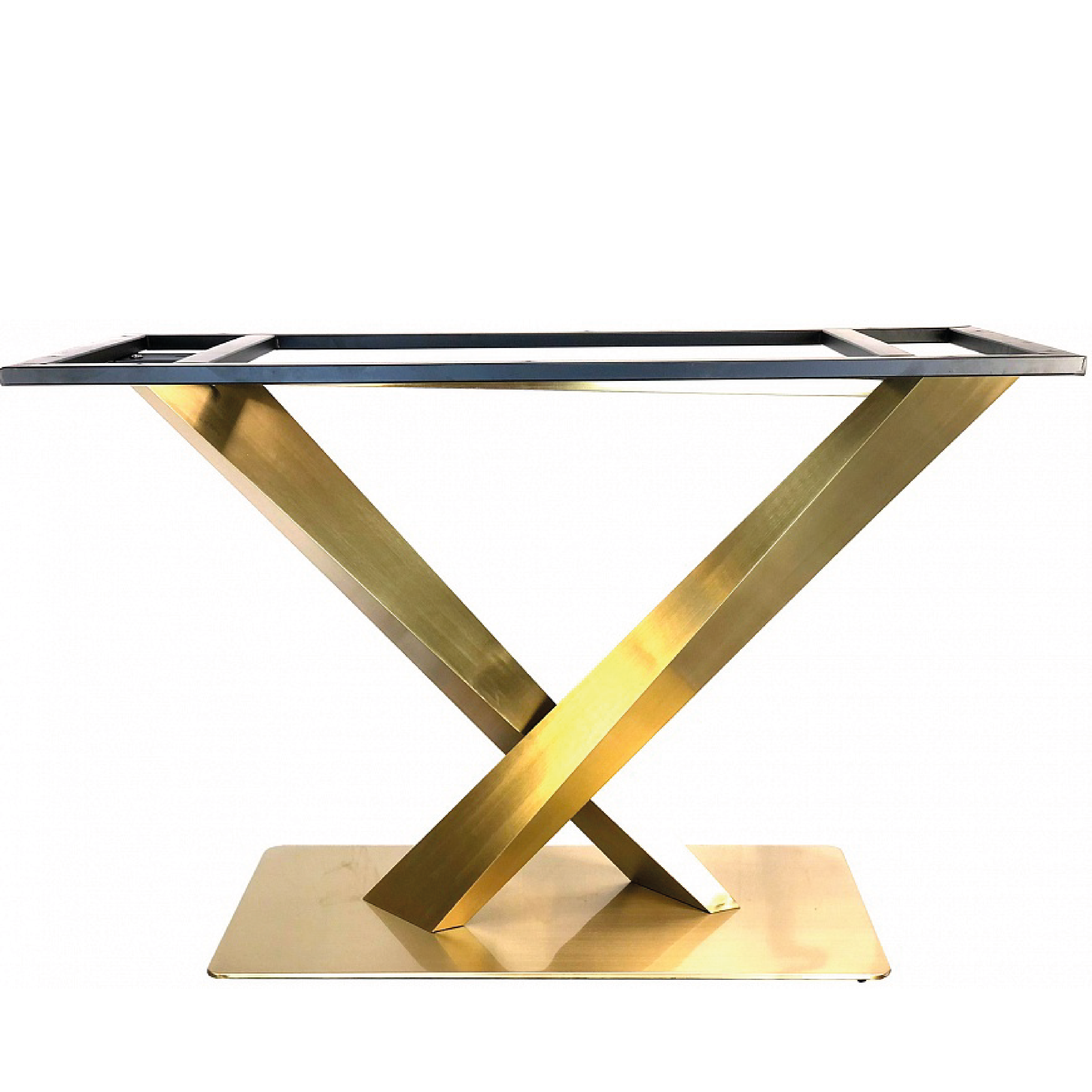 Подстолье из нержавеющей стали 1295EM Лаковое покрытие. цвет "под золото" (нитрид титана) Глубина основания: 40 см Длина основания: 80 см Высота: 72 см Размер верхней части: 112,5х50 см. Рекомендуемый размер столешницы: 140х90см. Заказать подстолье для своего проекта в городе Казани, вы можете связавшись с нами любым удобным для вас способом - по телефону, по электронной почте или заполнив форму обратной связи на нашем сайте.